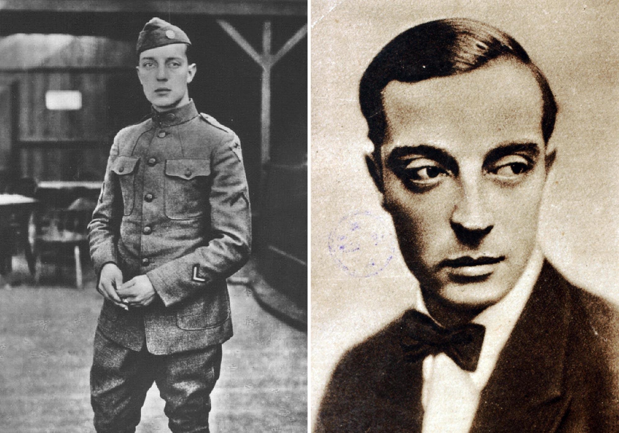 Buster Keaton, drafted into the 40th Infantry Division in 1917, was already active in vaudeville when he entered the Army. He continued to perform vaudeville while he was in the service– his “Snake Dance,” in which he “charmed” a rope of sausage links, became a popular, frequently-requested act. This act was so well-received by one general that he lent his car and driver to Keaton. He had the driver stop at a party of his enlisted buddies and because of the general’s insignia on the car, Keaton’s pals thought they getting a surprise inspection.