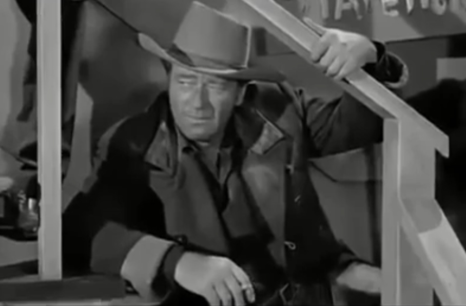 It’s no secret that Wayne’s characters get into conflict, shall we say, in his films. This film is no different, as he brags to Lomax (Kirk Douglas) after they each shot a villain. It serves as a way to inject humor, but Jackson is also reasserting himself as the top dog of the duo.