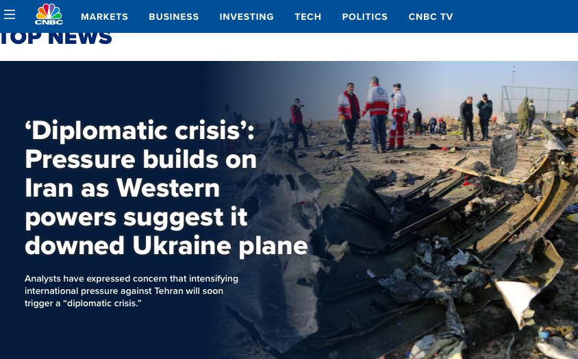 CNBC is apparently worried about too much international pressure on the murderous Mullahs in Iran for killing 176 innocent civilians on board a Ukraine International Airlines jet which Iran blew out of the sky in frustration over American pressure against the regime.