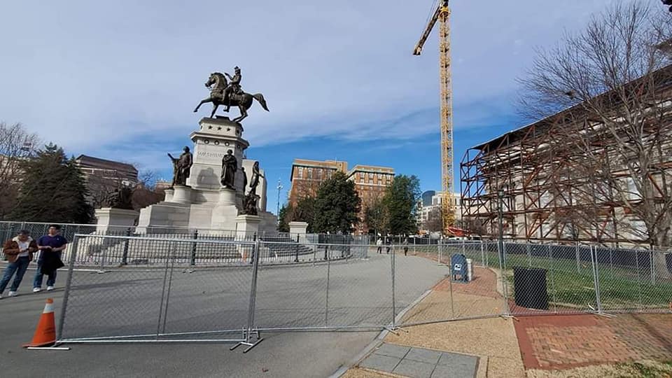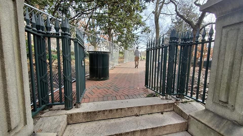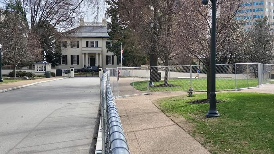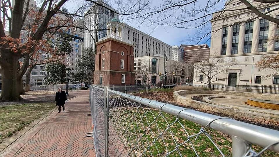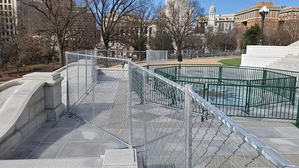 A fenced off area completing a full cage as now been installed around the Capitol Square building. Just as the Framers intended, the right to free speech shall be exercised in a quarantined area, protestors shall be frisked by security guards and searched with metal detectors. Oh, and there’s only one exit in case anything goes wrong.