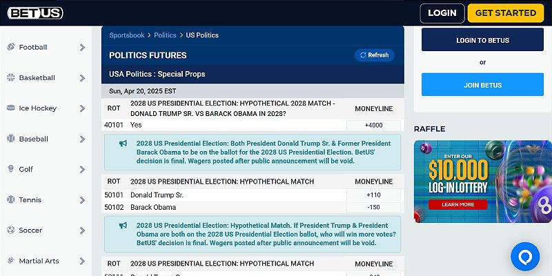 While BetUS might be renowned for its prowess in horse racing and sports markets, it doesn’t shy away from the world of political betting.