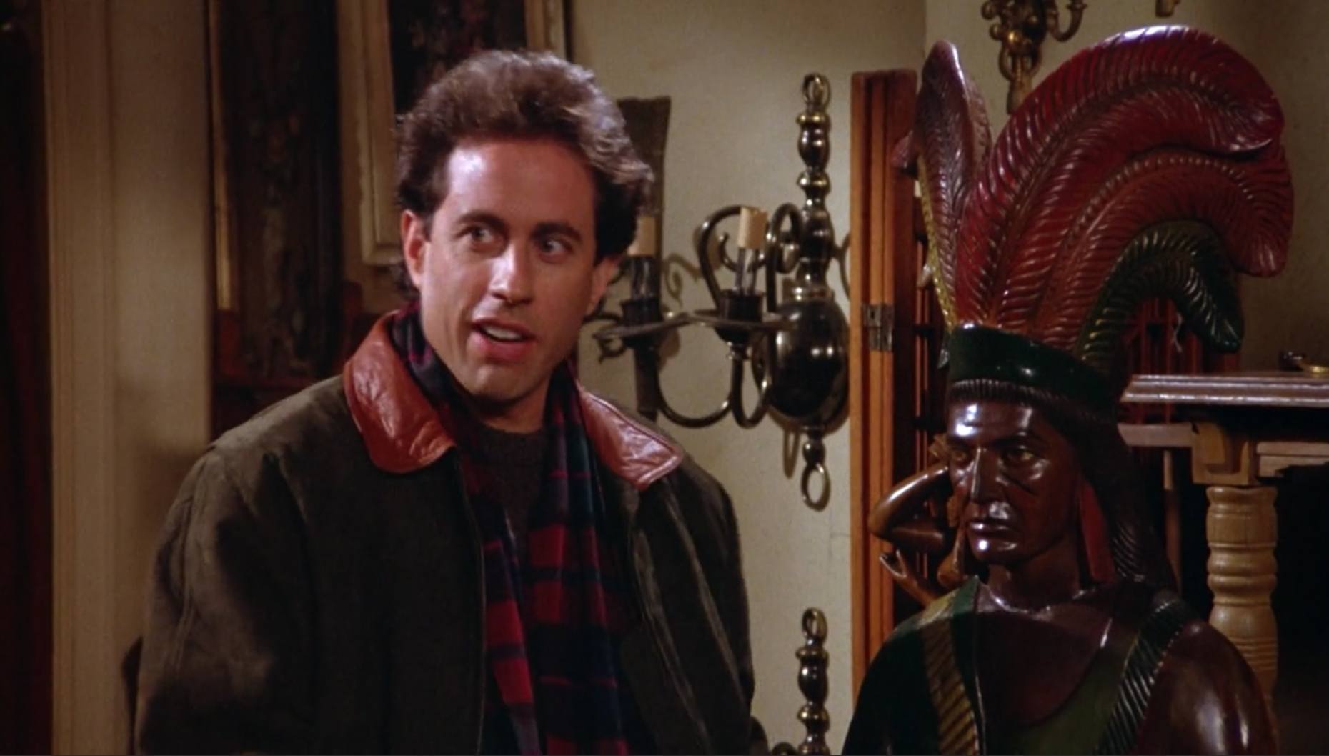 Elaine’s friend, Winona, thinks Jerry is “racially insensitive” when he gives Elaine a cigar-store Indian statue as a peace offering while making “hooting” noises. He somehow gets her to go on a date in order to make up for his racist gestures — but inadvertently calls her an “Indian giver.”