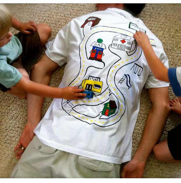 Kids love playing with cars and roadmap carpets, so this dad figured out a way he could get involved in his children’s playtime in a hilarious way!