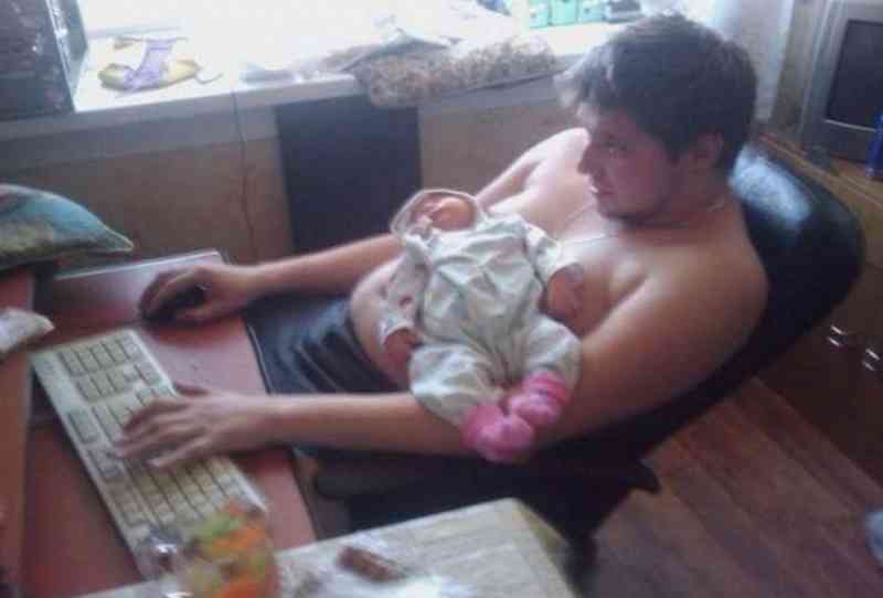 This father has found a way to rock his baby to sleep while also using both hands to surf the internet! This is quite a hack!