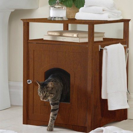 Nothing says “sweet dreams” like hearing your kitty use the facilities in the bedside table that also holds your book, eyeglasses, and glass of water. This takes multi-tasking a bit too far.