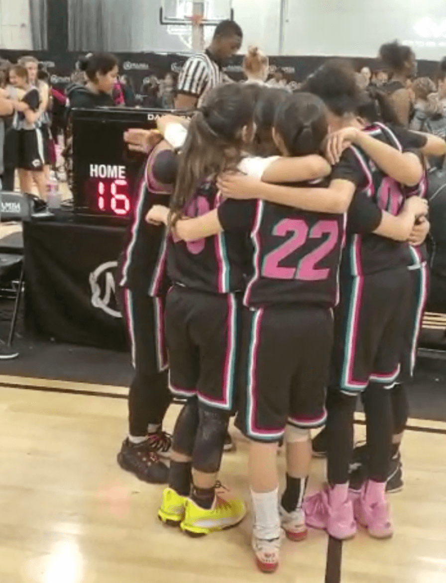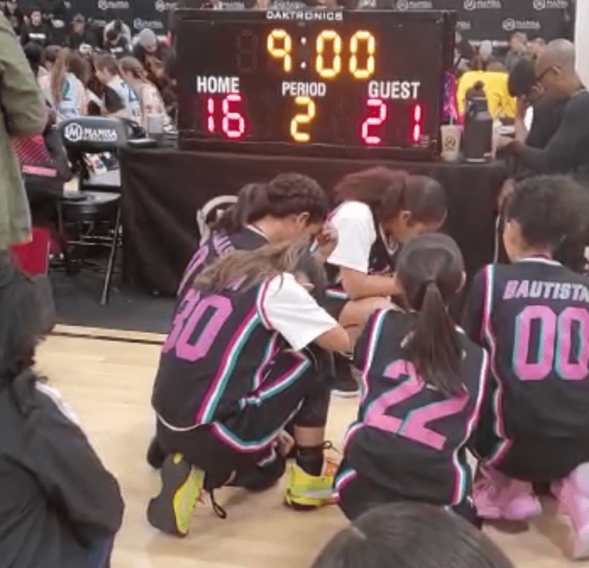 The heartbroken Lady Mavericks offered up their prayers at the Mamba Cup basketball tournament in Thousand Oaks, California.