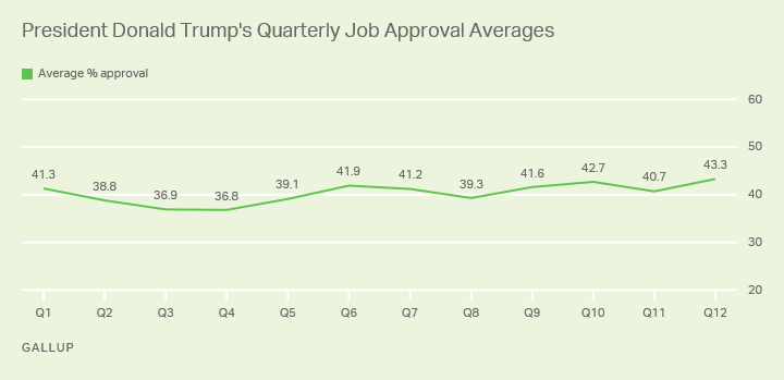 “Trump’s most recent approval ratings — between 43% and 45% in November through January — are some of the best of his presidency,” according to Gallup.