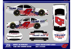 Mike Harmon Racing has announced that the No. 47 Chevrolet Camaro driven by Joe Nemechek will carrying the Patriotic colors of ‘TRUMP / PENCE 2020’ in the NASCAR Xfinity Series season opener NASCAR Racing Experience 300 at Daytona International Speedway on February 15.