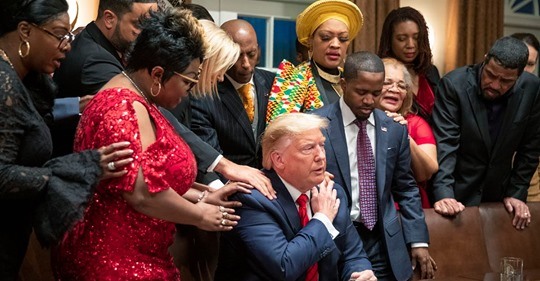 After each of us spoke to President Trump and he spoke at length, Dr. Alveda King asked if we could pray for the President, he was happy to have us gather around and lay on hands…