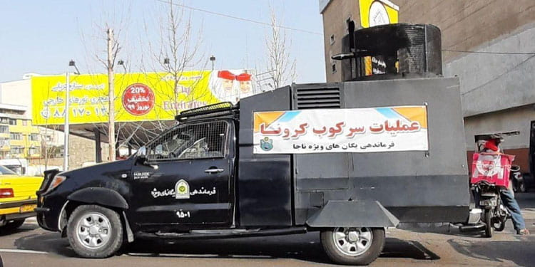 As people search for masks and disinfectants, the regime’s special forces in their vehicles display their presence to the public by installing the “Coronavirus Repression” logo on their cars. People understood this military presence on the streets has nothing to do with containment and control of Coronavirus and is merely to suppress possible uprisings.