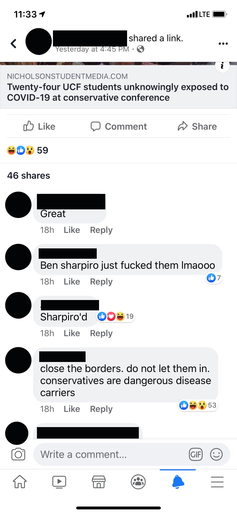 It was just announced that 24 conservative students at the University of Central Florida attended CPAC, where another attendee tested positive for coronavirus. Afterwards, liberals hit a new low by celebrating the news and suggesting that the students deserved to be exposed to coronavirus because they are Republicans.