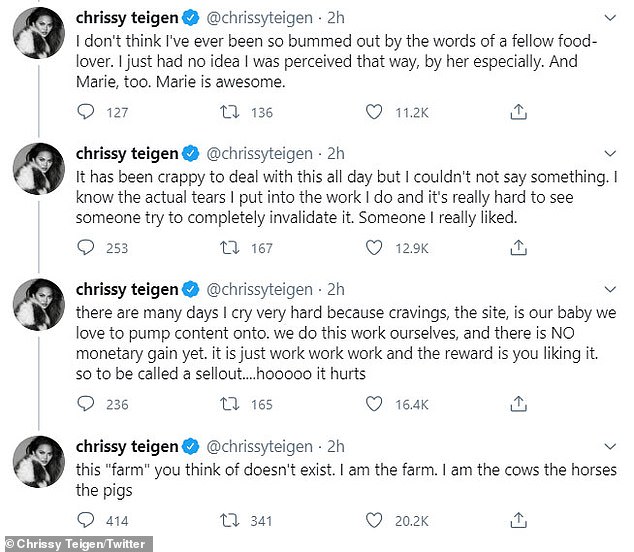 The 34-year-old model and wife of John Legend announced she’d be taking ‘a little break’ from social media after the drama with the New York Times food writer.