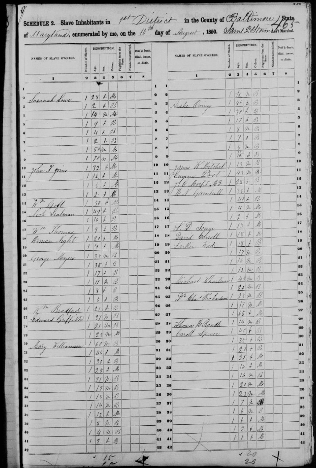 According to the census a “Thomas H Randel” owned a 14-year-old male in 1850 in Baltimore County.