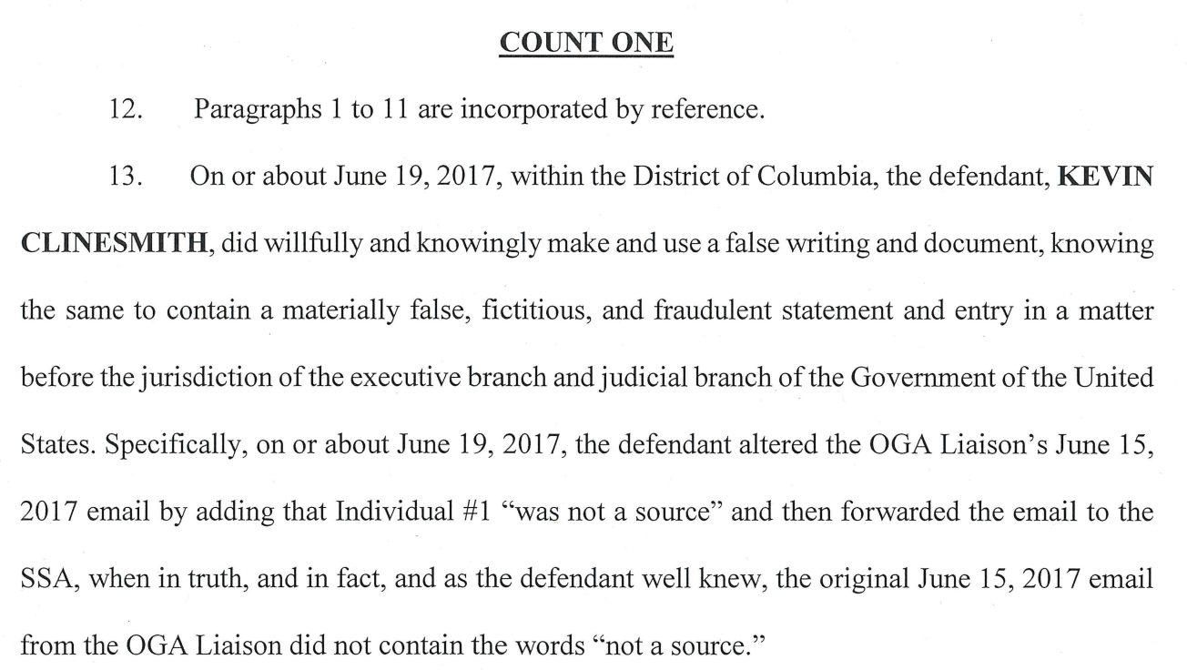 The single criminal count Clinesmith pled guilty to speaks for itself:
