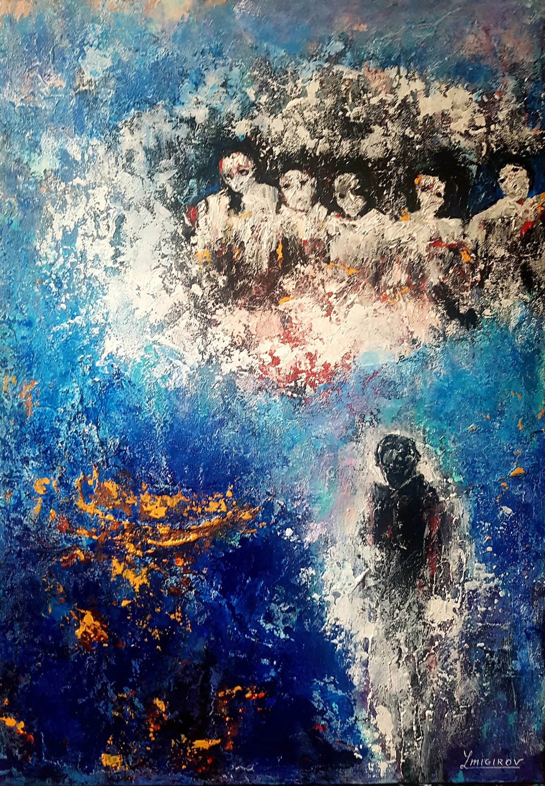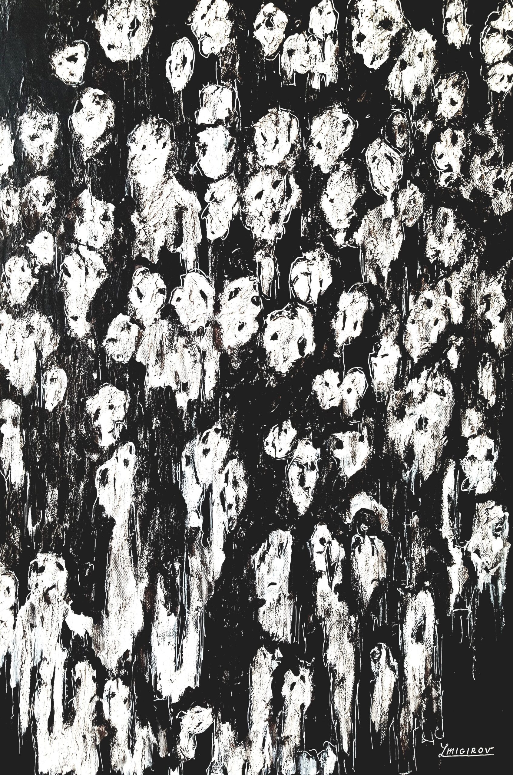 The images have been minded on the canvases look like anonymous stains. Naked souls being given mostly biblical names, exemplary figures symbolizing conflicts from the dawn of human history like Cain and Abel, Jacob and Esau, Isaac and Ishmael, alongside extermination camp names like Treblinka, Dachau and Sobibor. The artist meant to say that human nature from the beginning is made up of polarity that can lead to disaster if we do not know how to curb it.