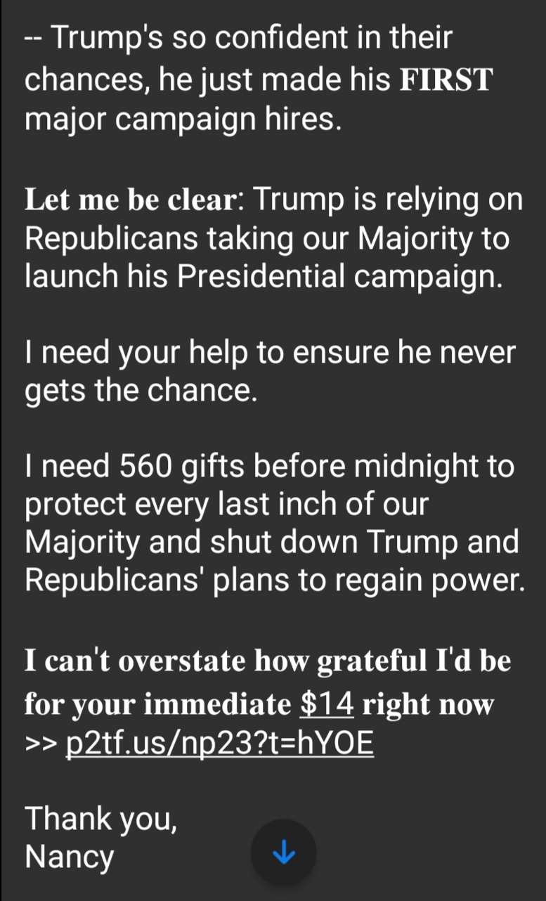 Guess who the Nancy is? Yup, Pelosi. Now think, the Republicans are knocking on the door. Pelosi is scared. History says she will lose the House and the Democrats will also lose the Senate. They think Republicans are fire-breathing fascists. Not to mention sexists, racists, and homophobes. We have House members like Paul Gosar and Marjorie Taylor Greene to go after. The Supreme Court could severely restrict abortion, or to them worse, in the upcoming Mississippi decision. Yet, the Speaker of the House, the most powerful Democrat on the Hill, doesn’t use any of that stuff as a bogeyman. She uses Trump.