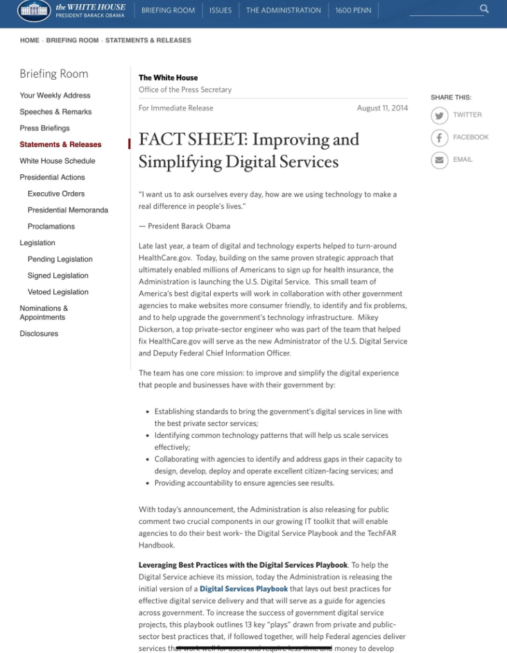The USDS was created under 44 USCS Chapter 36 to develop government technology. Shifting its focus to evaluating inefficiencies wasn’t a stretch—it was a natural progression. Obama himself believed in efficiency and modernization. Listen: