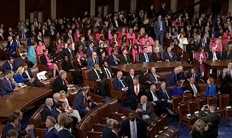 And speaking of women… a sea of Democrat women in the chamber donned bright pink in a show of so-called support – right after the Dems in the Senate unanimously voted against actually protecting women by letting men invade their sports. The irony was brighter than their outfits.