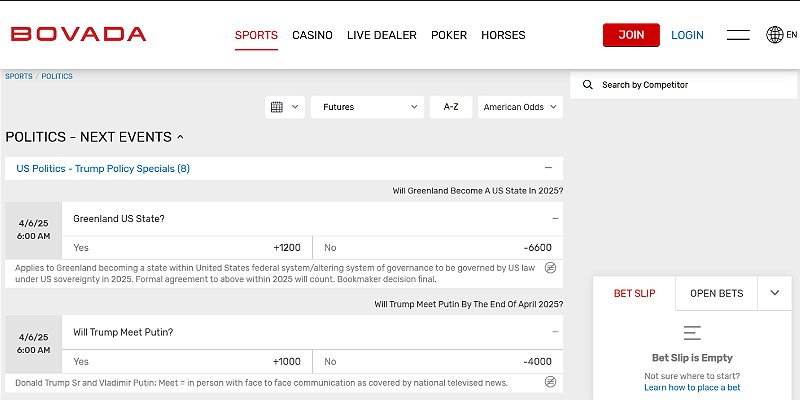 While BetUS might be renowned for its prowess in horse racing and sports markets, it doesn’t shy away from the world of political betting.